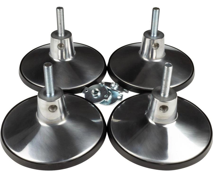 This set of four large leg levelers comes with a chrome finish and is constructed as a universal fit to work with most tables. Not compatible with Brunswick tables.