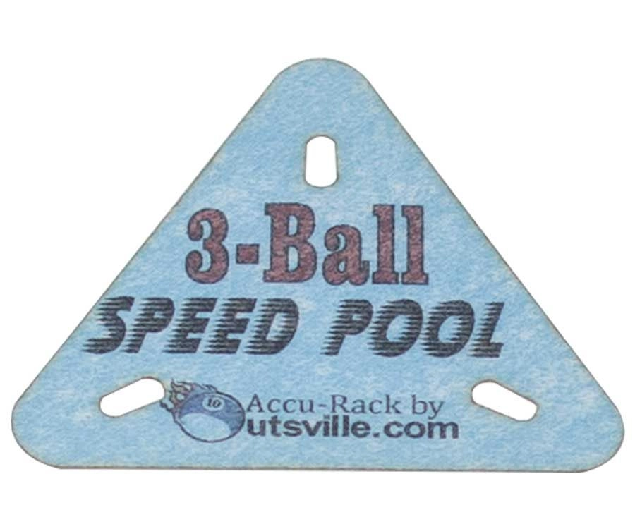 The Outsville Accu-Rack System features three different racks: “Diamond 9” for 9-ball play, “Pro 10” for 10-ball and the “Solo” for 8,9 or 10-ball. Also included is a 3-ball template for Speed Pool and a Shark Skin Table Saver Break Circle!